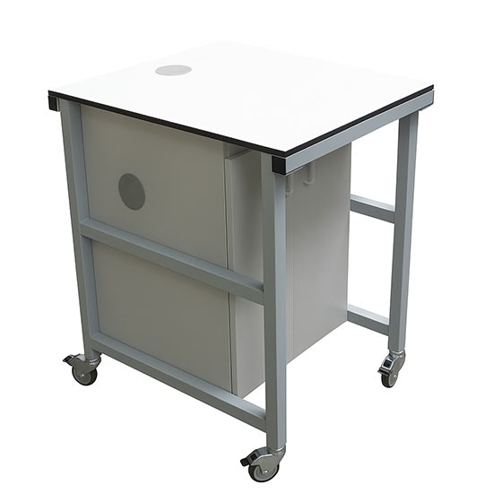 Passe-câbles intégrés sur les côtés du meuble et dans le plateau
