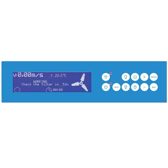 La coolonne Filtrante se compose d’un pré-filtre type G4 et filtre HEPA H14 (conforme à la norme EN-1822), taux d’efficacité< 99,995% pour les particules 0,3 µm, équipé d’une puce électronique avec connexion micro USB capable de stocker des informations (type de filtre installé, la date d’expiration et le numéro de série) et d’interagir sur le système d’alarme pour gérer le changement de filtre et adapter le flux d’air.